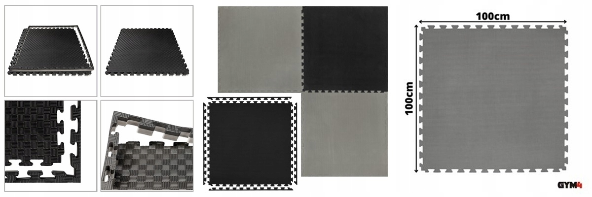 Jedna mata ma wymiar 100x100cm = 1m2 i ma formę dużego puzzla. Po ich połączeniu możesz stworzyć dowolnie dużą powierzchnię!
